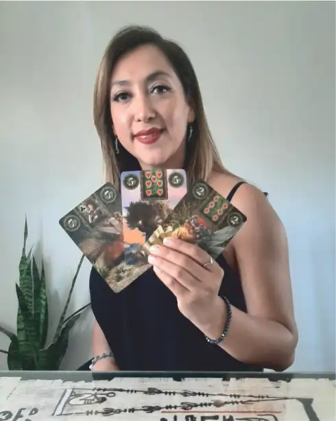 Experta en Lectura de Tarot y Coaching Espiritual, combina sabiduría ancestral con herramientas modernas para ayudarte a conectar con tu propósito y potenciar tu bienestar emocional y espiritual.